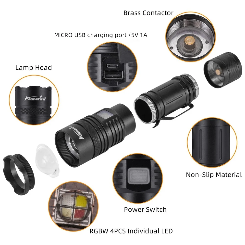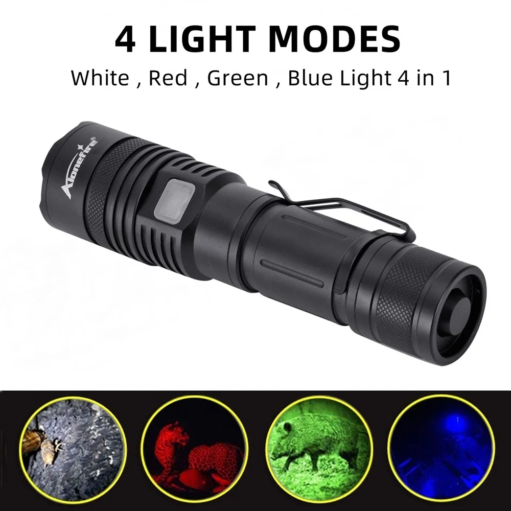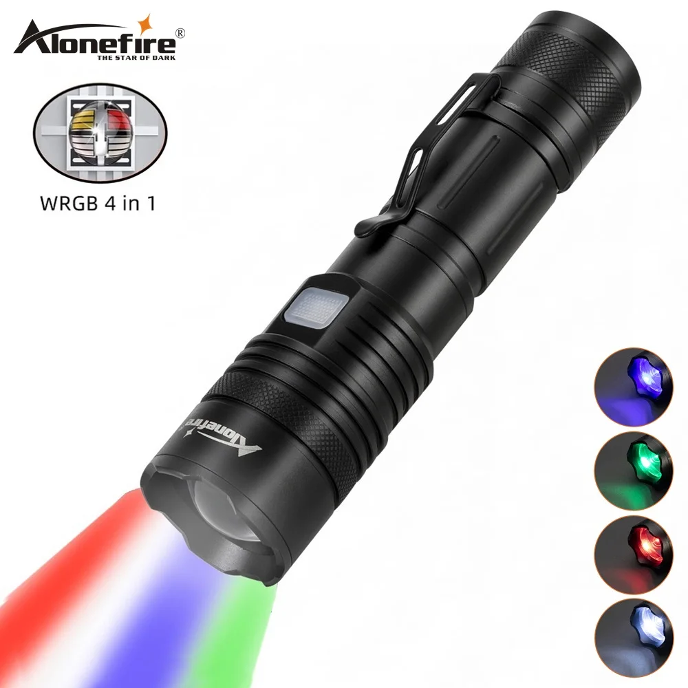 Zoom 4 colores Linterna de iluminación de alto brillo roja/verde/azul/blanca